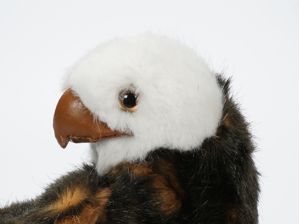 This astonishingly lifelike Bald Eaglet is one of a family of four created by the master artisans of Piutrè Italy. The synthetic, soft-to-the-touch plush is true to life, accurately replicating the mottled plumage of this magnificent bird. Each piece is hand-trimmed and hand-finished for an exceptional degree of realism. The tag on this Bald Eaglet, individually signed by a member of the Angeli family, is your hallmark of the uncompromising artistry and craftsmanship that go into the making of each Piutrè animal.
