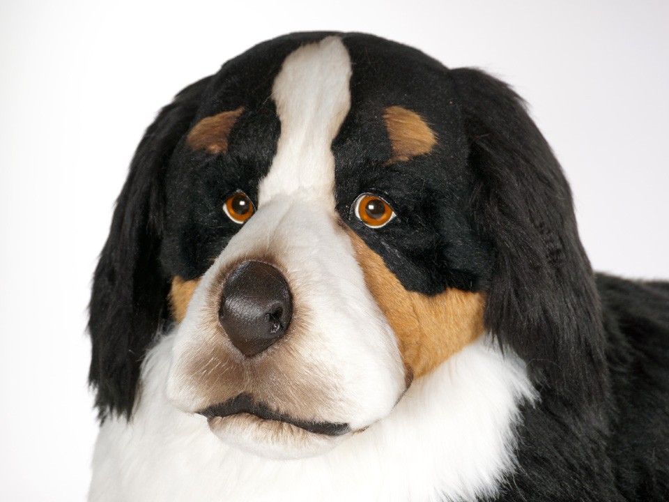 This astonishingly lifelike Bernese Mountain Dog, a full-size studio model, is one of a family of seven created by the master artisans of Piutrè Italy. The synthetic, soft-to-the-touch plush is true to life, in the characteristically long and silky coat of the breed. Each piece is hand-trimmed and hand-finished for an exceptional degree of realism. The tag on this Bernese Mountain Dog, individually signed by a member of the Angeli family, is your hallmark of the uncompromising artistry and craftsmanship that go into the making of each Piutrè animal.