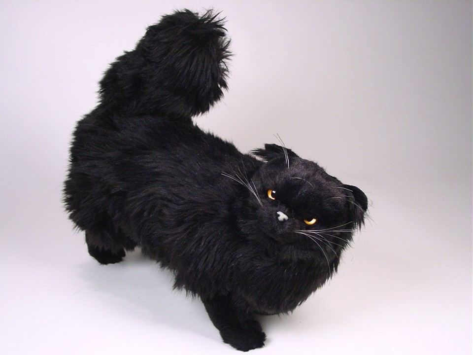 This astonishingly lifelike Black Persian Cat is one of a family of five created by the master artisans of Piutrè Italy. A full-size studio model, it's built around a steel frame for realism and stability. Every detail is just right — from its cobby body and long, thick coat to its expressive, brilliant-copper eyes. Each piece is made from synthetic, soft-to-the-touch plush and is hand-trimmed and hand-finished for an exceptional degree of realism. The tag on this Black Persian Cat, individually signed by a member of the Angeli family, is your hallmark of the uncompromising artistry and craftsmanship that goes into the making of each Piutrè animal.