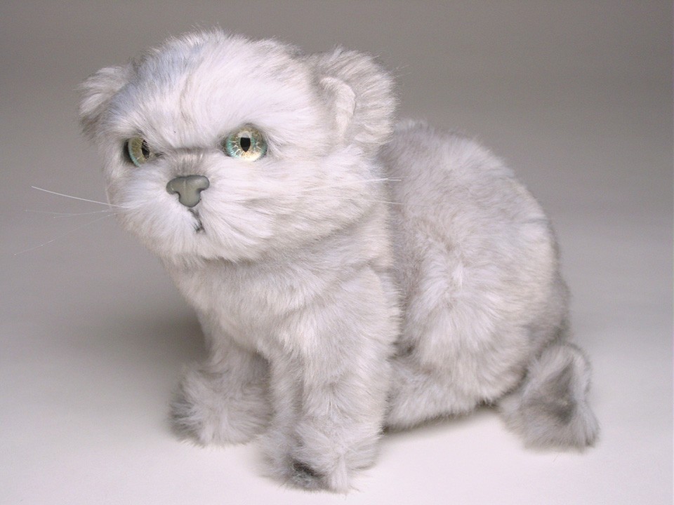 This astonishingly lifelike kitten is one of a family of seven Silver Persian Cats created by the master artisans of Piutrè Italy. Every detail is just right — from its cobby body and long, thick coat to its expressive, brilliant-copper eyes. Each piece is made from synthetic, soft-to-the-touch plush and is hand-trimmed and hand-finished for an exceptional degree of realism. The tag on this Silver Persian Kitten, individually signed by a member of the Angeli family, is your hallmark of the uncompromising artistry and craftsmanship that goes into the making of each Piutrè animal.
