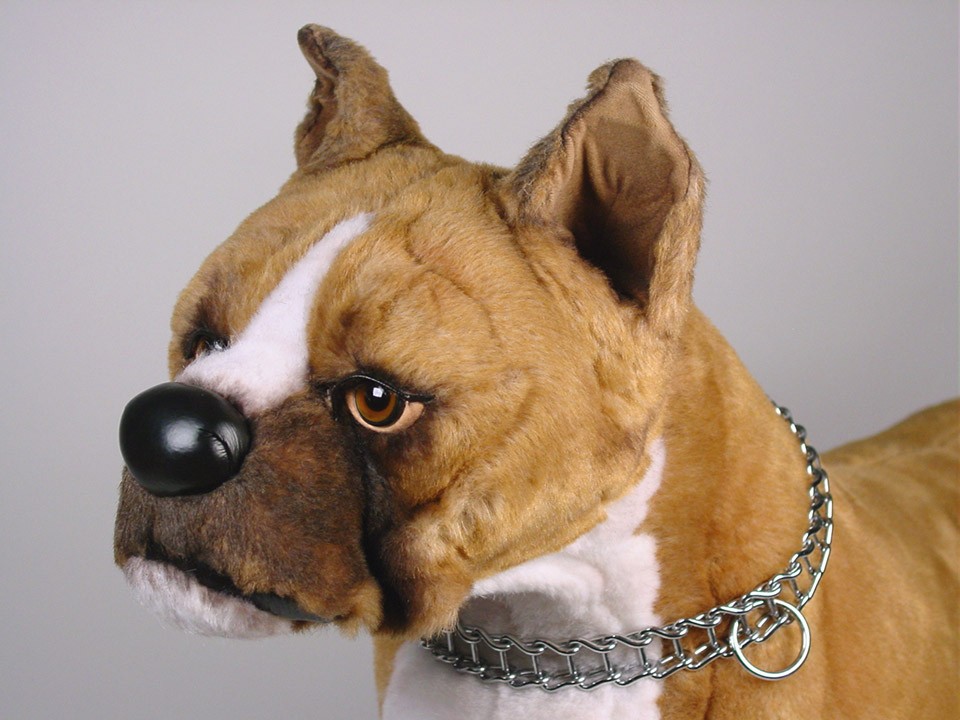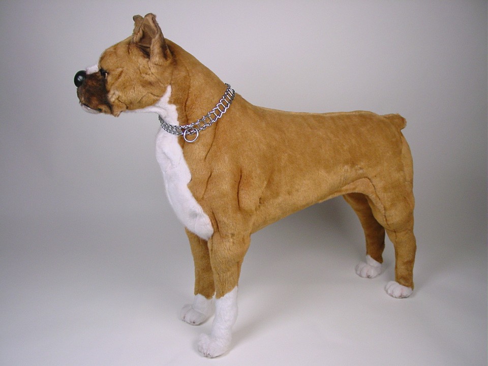 This astonishingly lifelike Boxer is one of a family of twelve created by the master artisans of Piutrè Italy. A full-size studio model, it's built around a steel frame for realism and stability. The synthetic, soft-to-the-touch plush is true to life, in the characteristically short, smooth coat of the breed. Each piece is hand-trimmed and hand-finished for an exceptional degree of realism. The tag on this Boxer, individually signed by a member of the Angeli family, is your hallmark of the uncompromising artistry and craftsmanship that go into the making of each Piutrè animal.