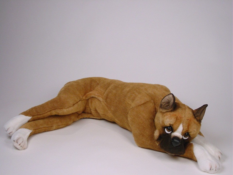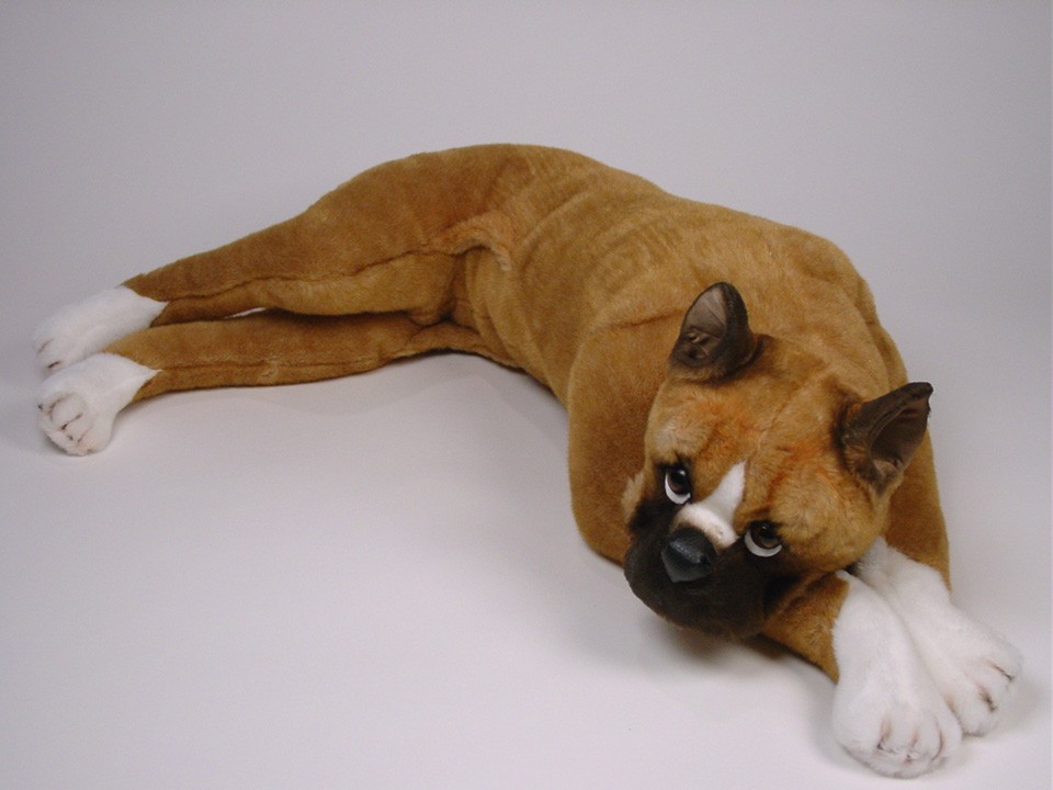 This astonishingly lifelike Boxer, a full-size studio model, is one of a family of twelve created by the master artisans of Piutrè Italy. The synthetic, soft-to-the-touch plush is true to life, in the characteristically short, smooth coat of the breed. Each piece is hand-trimmed and hand-finished for an exceptional degree of realism. The tag on this Boxer, individually signed by a member of the Angeli family, is your hallmark of the uncompromising artistry and craftsmanship that go into the making of each Piutrè animal.