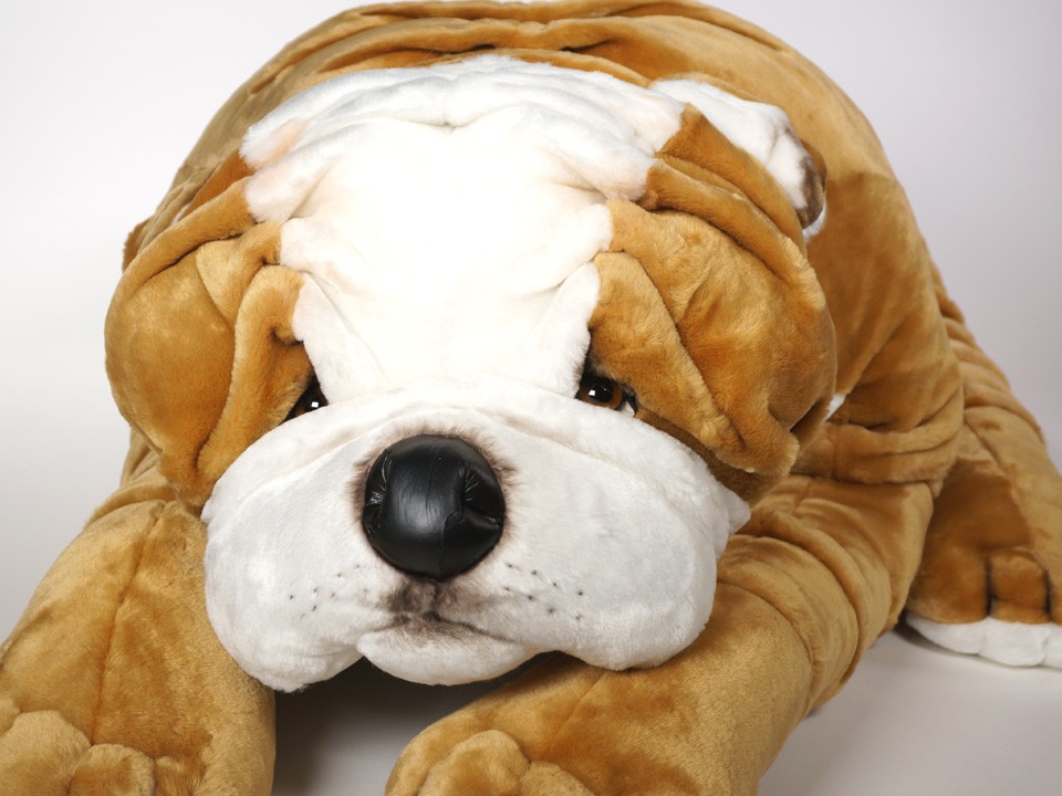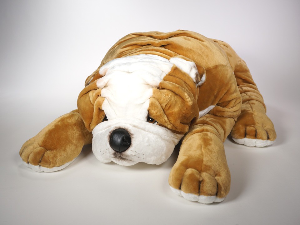 This astonishingly lifelike Bulldog, a full-size studio model, is one of a family of seven created by the master artisans of Piutrè Italy. The synthetic, soft-to-the-touch plush is true to life, in the characteristically short, fine-textured coat of the breed. Each piece is hand-trimmed and hand-finished for an exceptional degree of realism. The tag on this Bulldog, individually signed by a member of the Angeli family, is your hallmark of the uncompromising artistry and craftsmanship that go into the making of each Piutrè animal.