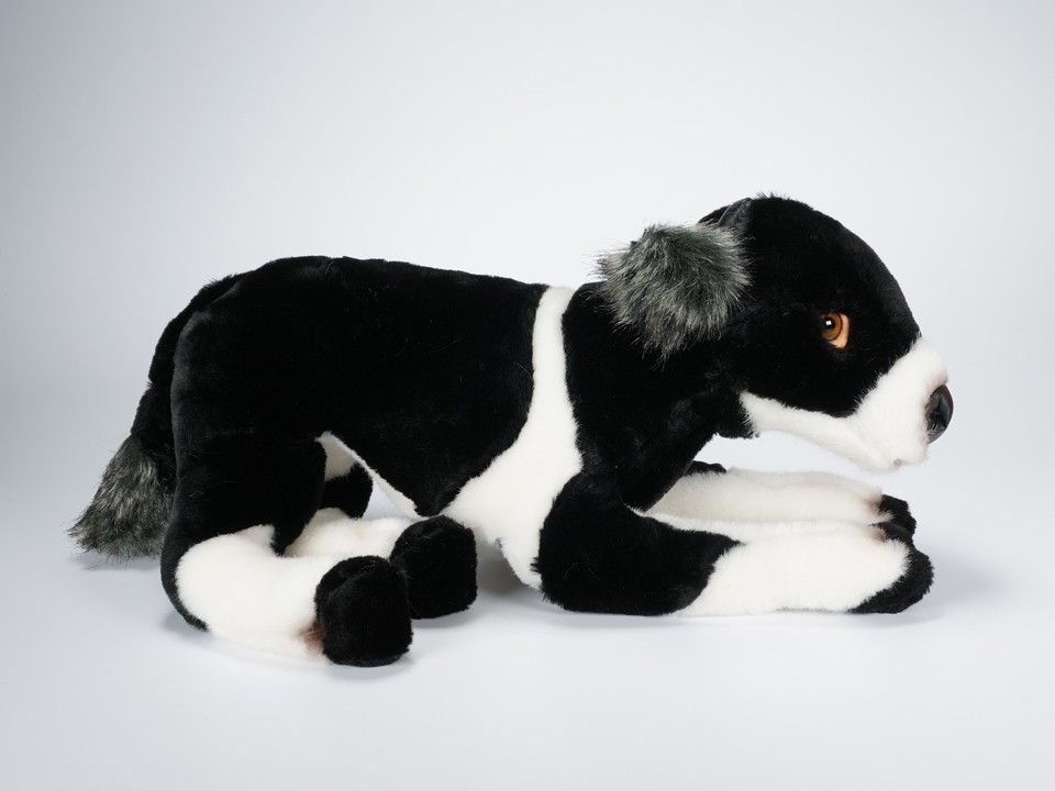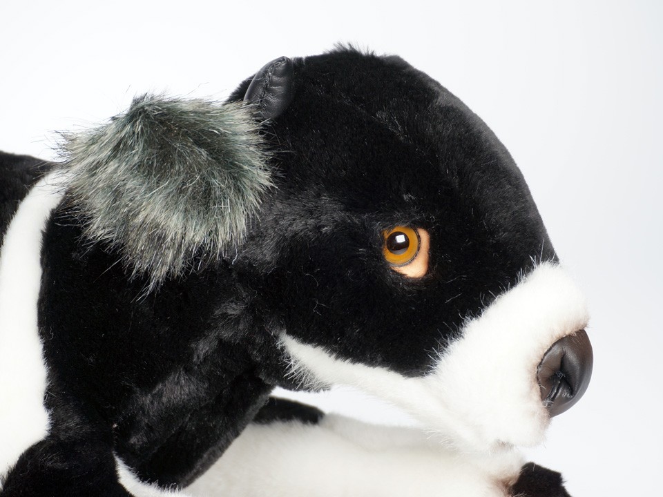 This astonishingtly lifelike Calf is one of a family of nearly a dozen Cows created by the master artisans of Piutrè Italy. Every detail is just right — from its short, black-and-white coat to its shiny black nose and horn buds. The synthetic, soft-to-the-touch plush is true to life, with each piece hand-trimmed and hand-finished for an exceptional degree of realism. The tag on this Calf, individually signed by a member of the Angeli family, is your hallmark of the uncompromising artistry and craftsmanship that go into the making of each Piutrè animal.