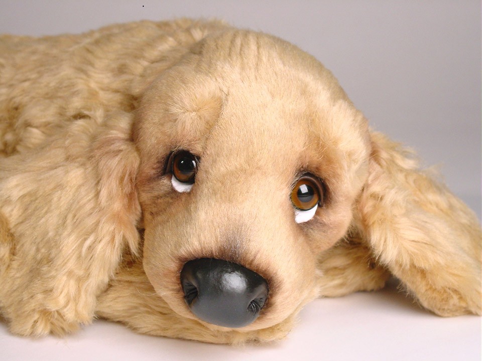 This astonishingly lifelike puppy is one of nearly two dozen Cocker Spaniels created by the master artisans of Piutrè Italy. The synthetic, soft-to-the-touch plush is true to life, in the characteristically silky, slightly wavy coat of the breed. Each piece is hand-trimmed and hand-finished for an exceptional degree of realism. The tag on this Cocker Spaniel Puppy, individually signed by a member of the Angeli family, is your hallmark of the uncompromising artistry and craftsmanship that go into the making of each Piutrè animal.