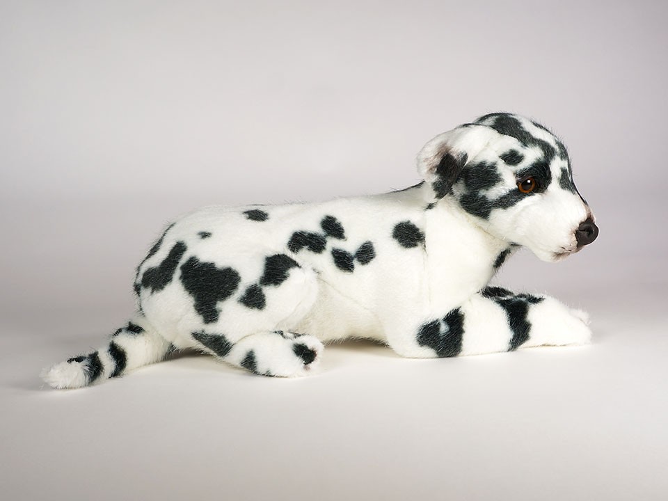 This astonishingly lifelike puppy is one of a family of a dozen Dalmatians created by the master artisans of Piutrè Italy. The synthetic, soft-to-the-touch plush is true to life, in the characteristically sleek, glossy, and amply spotted coat of the breed. Each piece is hand-trimmed and hand-finished for an exceptional degree of realism. The tag on this Dalmatian, individually signed by a member of the Angeli family, is your hallmark of the uncompromising artistry and craftsmanship that go into the making of each Piutrè animal.