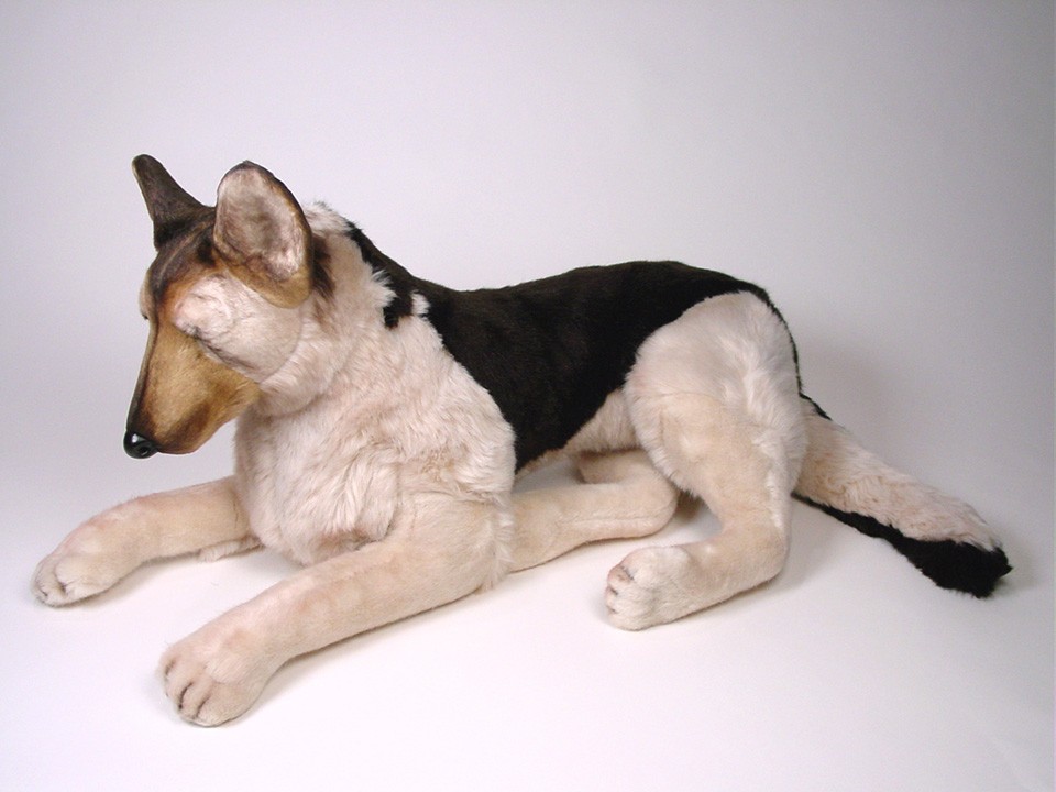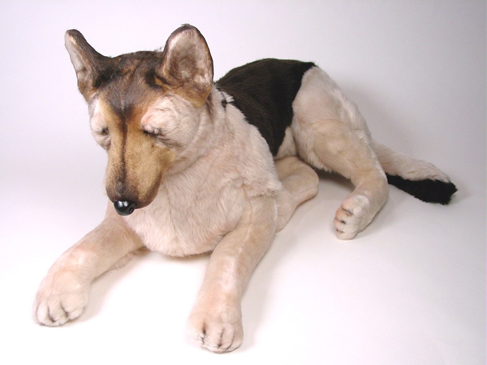 This astonishingly lifelike German Shepherd Dog is one of a family of fifteen created by the master artisans of Piutrè Italy. The synthetic, soft-to-the-touch plush is true to life, in the characteristically dense, black-and-tan coat of the breed. Each piece is hand-trimmed and hand-finished for an exceptional degree of realism. The tag on this German Shepherd Dog, individually signed by a member of the Angeli family, is your hallmark of the uncompromising artistry and craftsmanship that go into the making of each Piutrè animal.