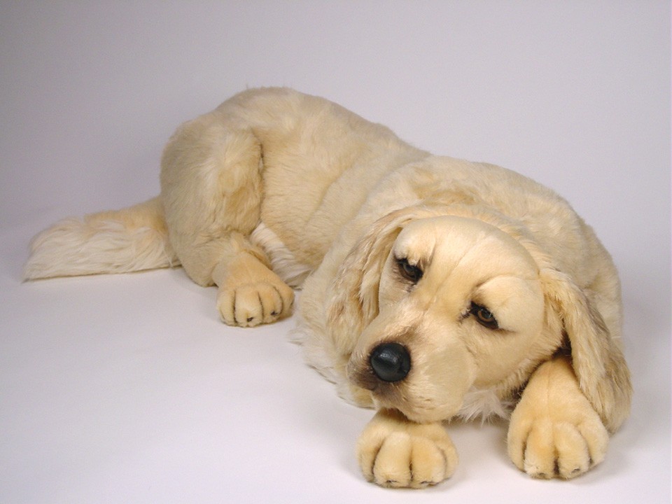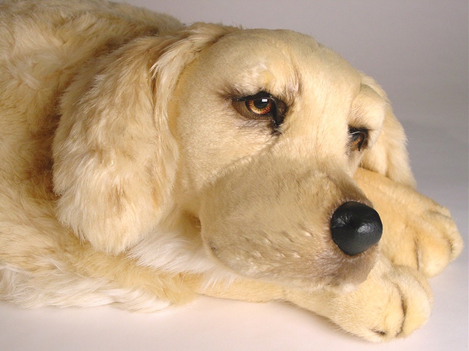 This astonishingly lifelike Golden Retriever, a fulls-size studio model, is one of a family of nearly twenty created by the master artisans of Piutrè Italy. The synthetic, soft-to-the-touch plush is true to life, in the characteristically rich and lustrous coat of the breed. Each piece is hand-trimmed and hand-finished for an exceptional degree of realism. The tag on this Golden Retriever, individually signed by a member of the Angeli family, is your hallmark of the uncompromising artistry and craftsmanship that go into the making of each Piutrè animal.