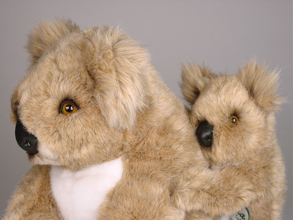 This astonishingly lifelike Koala with Cub, a full-size studio model, is one of a family of four created by the master artisans of Piutrè Italy. The synthetic, soft-to-the-touch plush is true to life, from its tufted ears to its cream-colored chest. Each piece is hand-trimmed and hand-finished for an exceptional degree of realism. The tag on this Koala with Cub, individually signed by a member of the Angeli family, is your hallmark of the uncompromising artistry and craftsmanship that go into the making of each Piutrè animal.