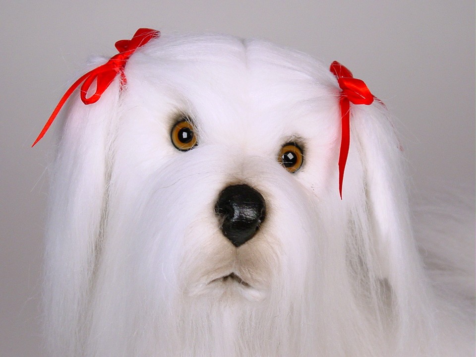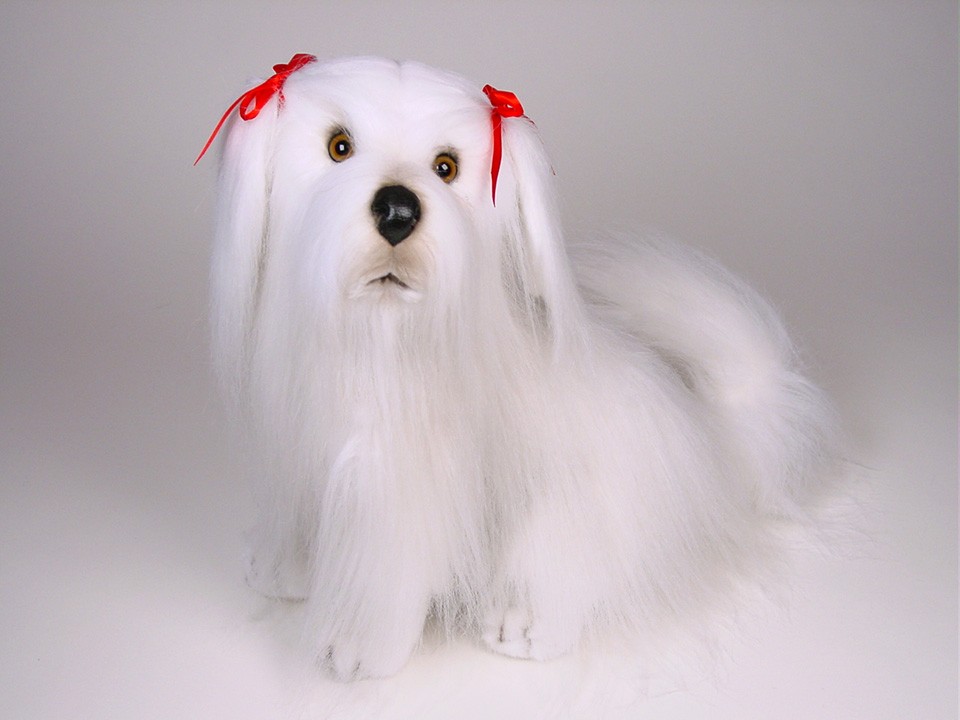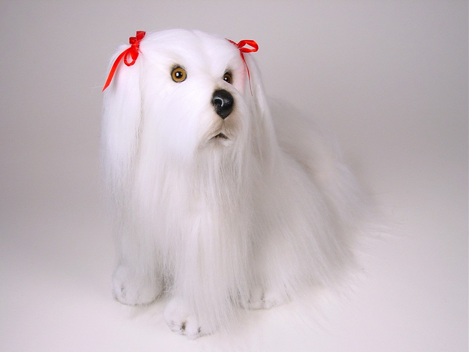 This astonishingly lifelike Maltese, a full-size studio model, is one of three created by the master artisans of Piutrè Italy. The synthetic, soft-to-the-touch plush is true to life, accurately replicating the characteristically long and silky coat of the breed. Each piece is hand-trimmed and hand-finished for an exceptional degree of realism. The tag on this Maltese, individually signed by a member of the Angeli family, is your hallmark of the uncompromising artistry and craftsmanship that go into the making of each Piutrè animal.