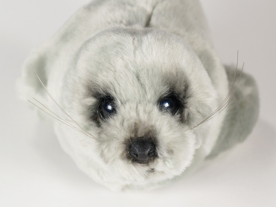 This adorable little Mediterranean Monk Seal Pup is one of a family of three Mediterranean Monk Seals created by the master artisans of Piutrè Italy. The synthetic, soft-to-the-touch plush is true to life, accurately replicating its distinctive head and face (even its whiskers) and its long, robust body and flippers. Each piece is hand-trimmed and hand-finished for an exceptional degree of realism. The tag on this Mediterranean Monk Seal Pup, individually signed by a member of the Angeli family, is your hallmark of the uncompromising artistry and craftsmanship that go into the making of each Piutrè animal.