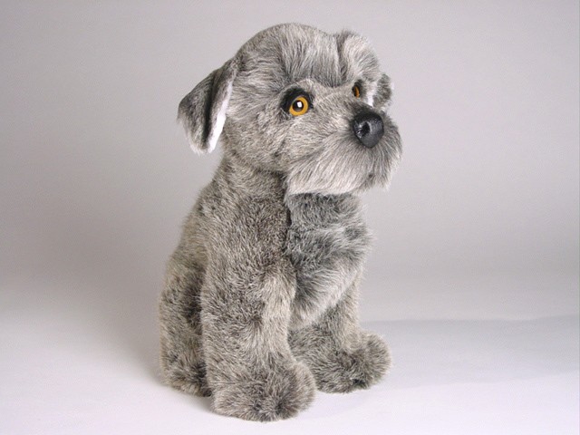 This astonishingly lifelike puppy is one of a family of a dozen Miniature Schnauzers created by the master artisans of Piutrè Italy. The synthetic, soft-to-the-touch plush is true to life, in the characteristically hard, wiry coat of the breed. Each piece is hand-trimmed and hand-finished for an exceptional degree of realism. The tag on this Miniature Schnauzer Puppy, individually signed by a member of the Angeli family, is your hallmark of the uncompromising artistry and craftsmanship that go into the making of each Piutrè animal.