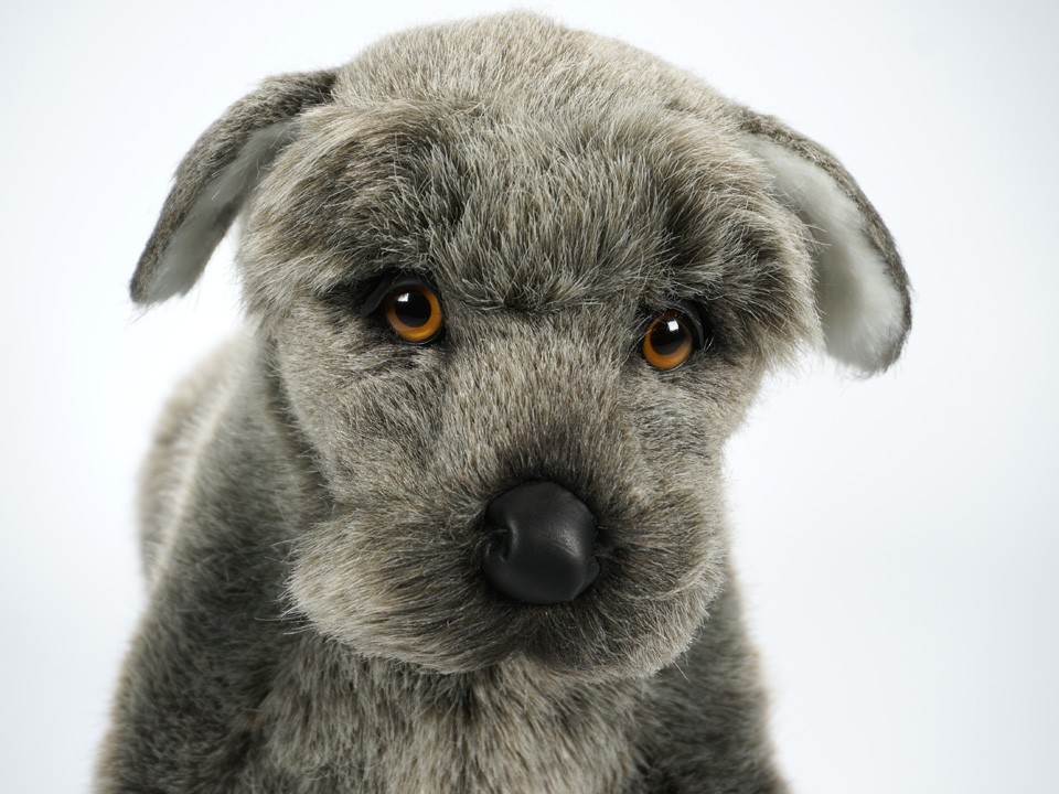 This astonishingly lifelike puppy is one of a family of a dozen Miniature Schnauzers created by the master artisans of Piutrè Italy. The synthetic, soft-to-the-touch plush is true to life, in the characteristically hard, wiry coat of the breed. Each piece is hand-trimmed and hand-finished for an exceptional degree of realism. The tag on this Miniature Schnauzer Puppy, individually signed by a member of the Angeli family, is your hallmark of the uncompromising artistry and craftsmanship that go into the making of each Piutrè animal.