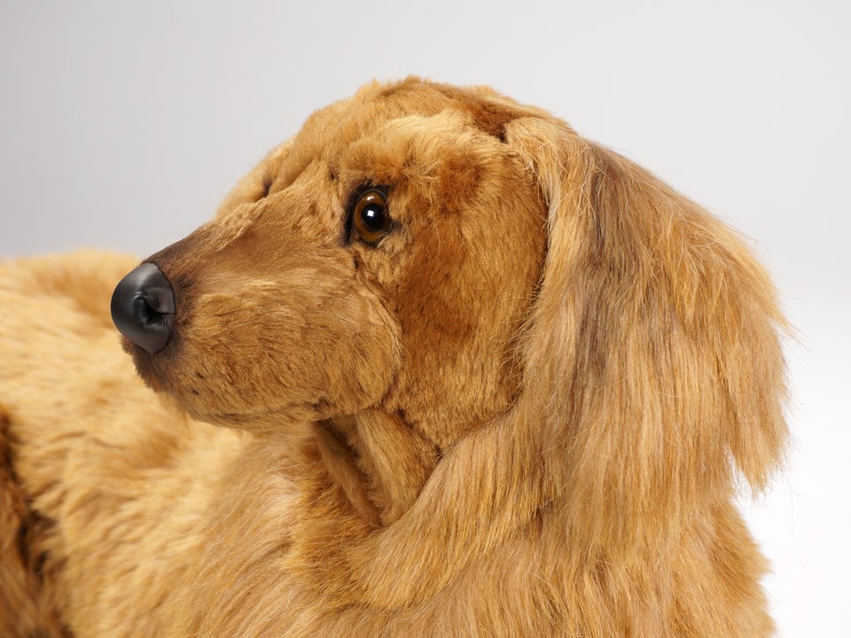 This astonishingly lifelike Longhaired Dachshund, a full-size studio model, is one of a family of five created by the master artisans of Piutrè Italy. The synthetic, soft-to-the-touch plush is true to life, in the characteristically sleek, slightly wavy coat of the breed. Each piece is hand-trimmed and hand-finished for an exceptional degree of realism. The tag on this Longhaired Dachshund, individually signed by a member of the Angeli family, is your hallmark of the uncompromising artistry and craftsmanship that go into the making of each Piutrè animal.
