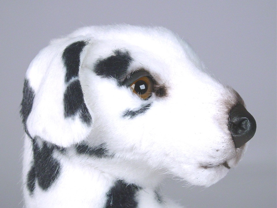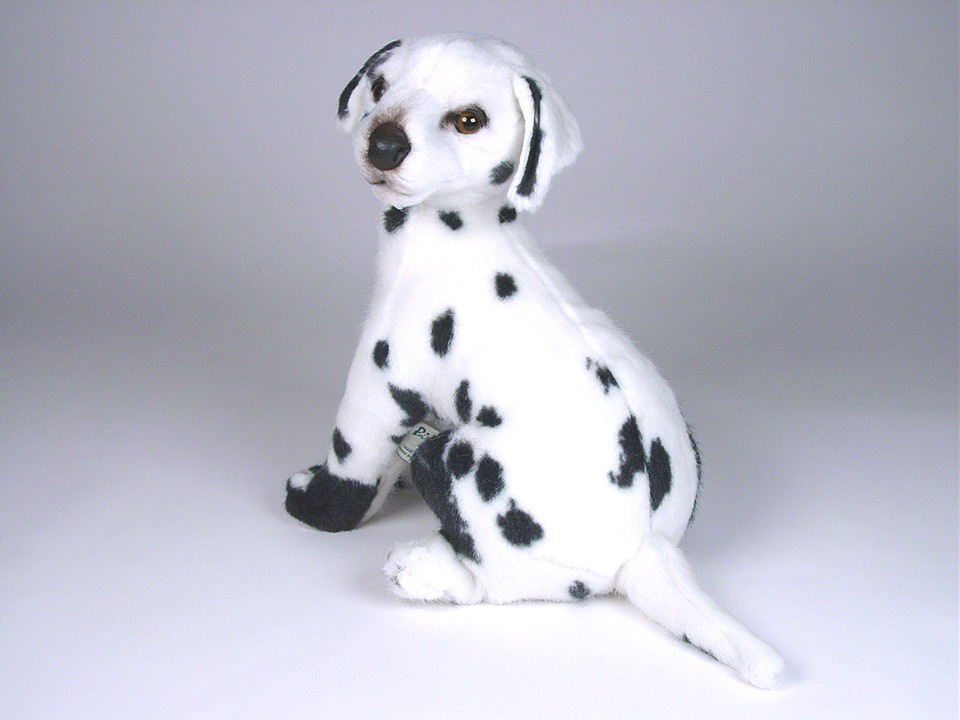 This astonishingly lifelike puppy is one of a family of a dozen Dalmatians created by the master artisans of Piutrè Italy. The synthetic, soft-to-the-touch plush is true to life, in the characteristically sleek, glossy, and amply spotted coat of the breed. Each piece is hand-trimmed and hand-finished for an exceptional degree of realism. The tag on this Dalmatian, individually signed by a member of the Angeli family, is your hallmark of the uncompromising artistry and craftsmanship that go into the making of each Piutrè animal.
