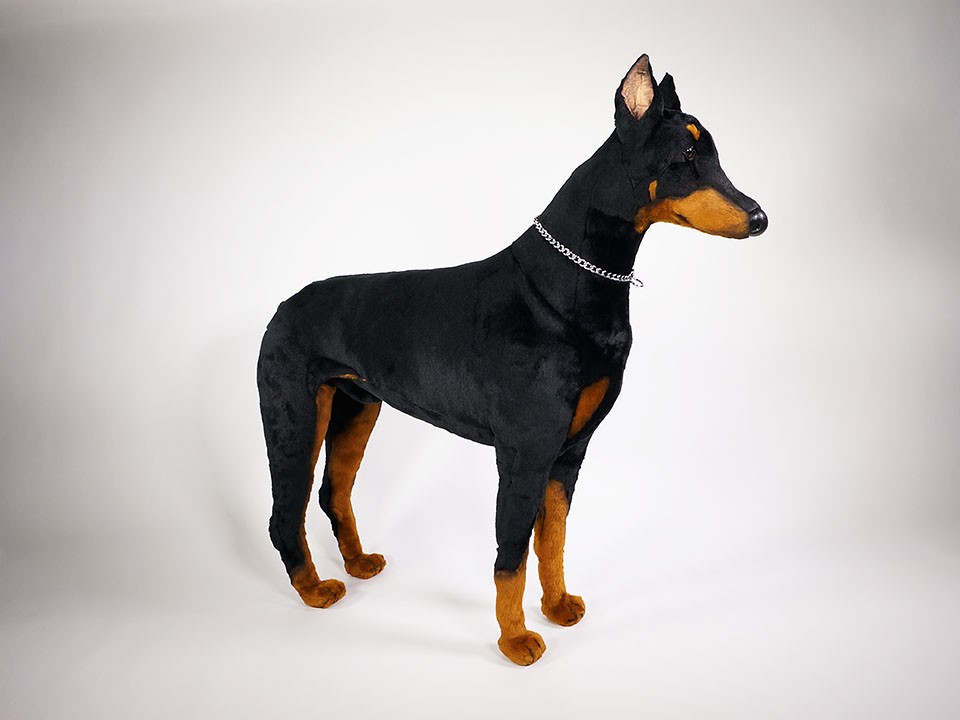 This astonishingly lifelike Doberman Pinscher is one of a family of more than a dozen Dobermans created by the master artisans of Piutrè Italy. A full-size studio model, it's built around a steel frame for realism and stability. The synthetic, soft-to-the-touch plush is true to life, in the characteristically short, close-lying coat of the breed. Each piece is hand-trimmed and hand-finished for an exceptional degree of realism. The tag on this Doberman Pinscher, individually signed by a member of the Angeli family, is your hallmark of the uncompromising artistry and craftsmanship that go into the making of each Piutrè animal.