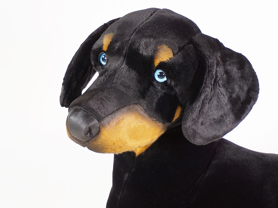 This astonishingly lifelike Doberman Pinscher—a full-size studio model with natural ears and tail and blue eyes—is one of a family of more than a dozen Dobermans created by the master artisans of Piutrè Italy. The synthetic, soft-to-the-touch plush is true to life, in the characteristically short, close-lying coat of the breed. Each piece is hand-trimmed and hand-finished for an exceptional degree of realism. The tag on this Doberman Pinscher, individually signed by a member of the Angeli family, is your hallmark of the uncompromising artistry and craftsmanship that go into the making of each Piutrè animal.