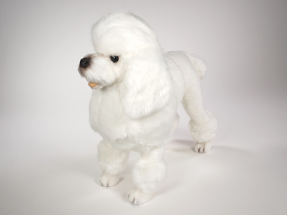 This astonishingly lifelike Miniature Poodle is one of more than a dozen Poodles created by the master artisans of Piutrè Italy. A full-size studio model, it's built around a steel frame for realism and stability. The synthetic, soft-to-the-touch plush is true to life, in the characteristically dense, curly coat of the breed. Each piece is hand-trimmed and hand-finished for an exceptional degree of realism. The tag on this Miniature Poodle, individually signed by a member of the Angeli family, is your hallmark of the uncompromising artistry and craftsmanship that go into the making of each Piutrè animal.