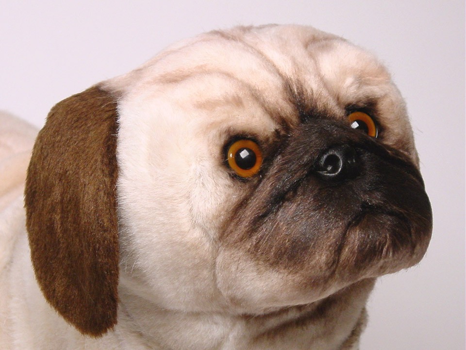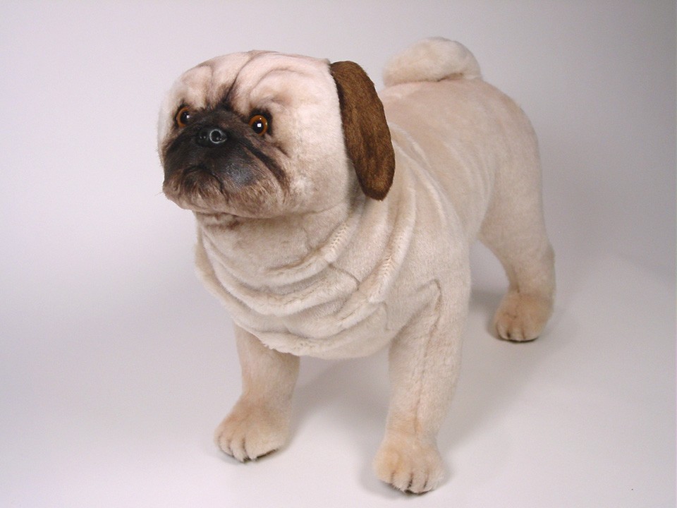 This astonishingly lifelike Pug is one of a family of six created by the master artisans of Piutrè Italy. A full-size studio model, it's built around a steel frame for realism and stability. The synthetic, soft-to-the-touch plush is true to life, in the characteristically short, fine coat of the breed. Each piece is hand-trimmed and hand-finished for an exceptional degree of realism. The tag on this Pug, individually signed by a member of the Angeli family, is your hallmark of the uncompromising artistry and craftsmanship that go into the making of each Piutrè animal.