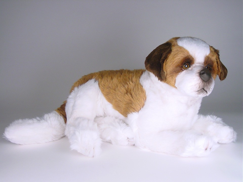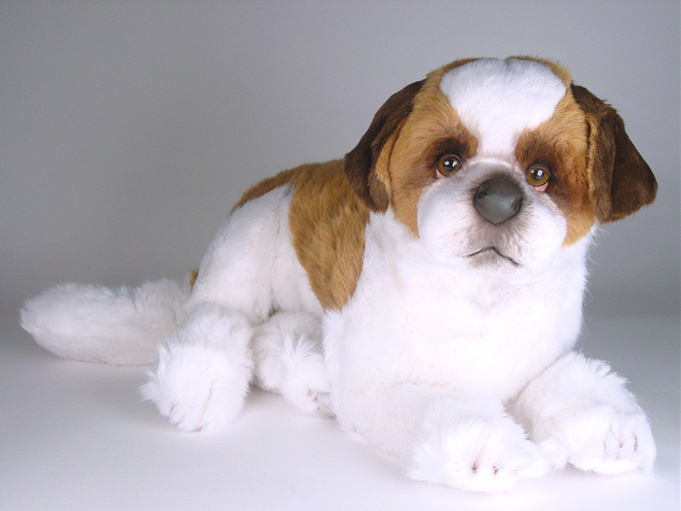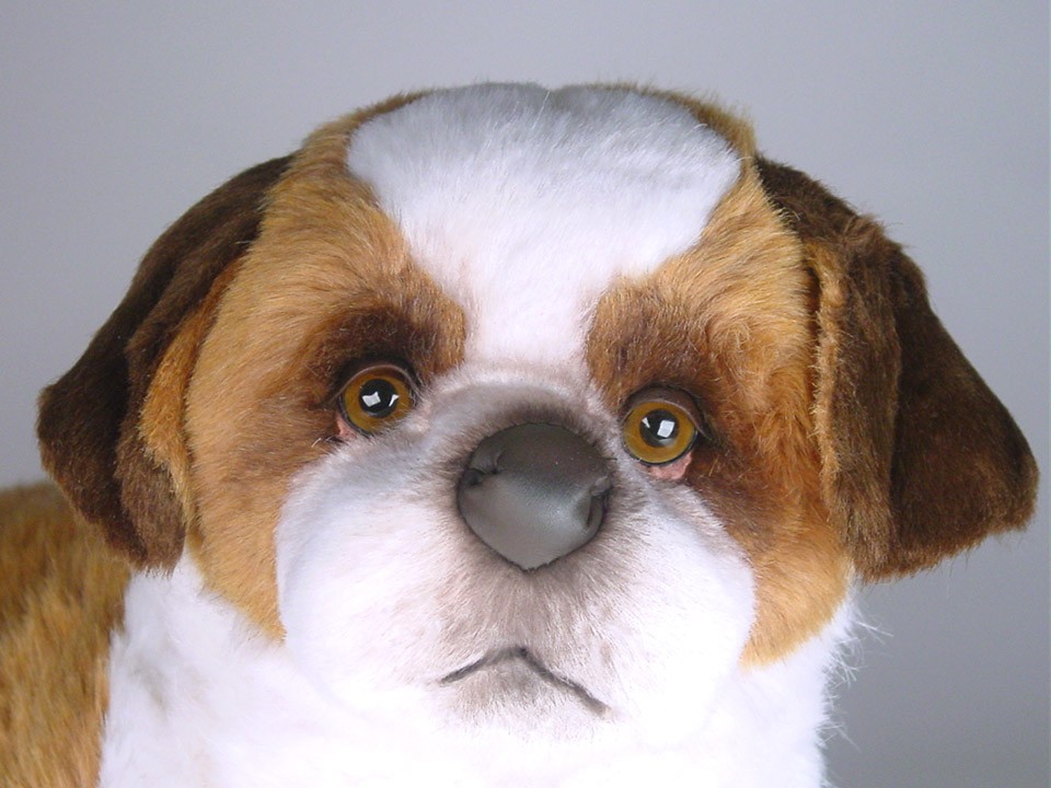 This astonishingly lifelike puppy is one of a family of nearly twenty Saint Bernards created by the master artisans of Piutrè Italy. The synthetic, soft-to-the-touch plush is true to life, in the characteristically dense, short-haired coat of the breed. Each piece is hand-trimmed and hand-finished for an exceptional degree of realism. The tag on this Saint Bernard Puppy, individually signed by a member of the Angeli family, is your hallmark of the uncompromising artistry and craftsmanship that go into the making of each Piutrè animal.