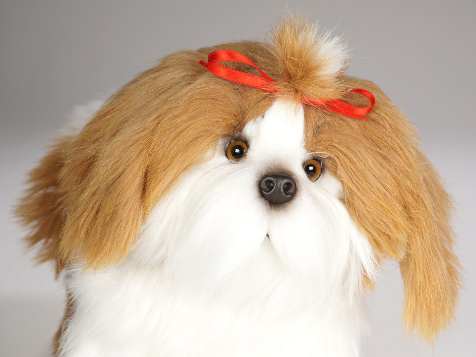 This astonishingly lifelike Shih Tzu, a full-size studio model, is one of three created by the master artisans of Piutrè Italy. The synthetic, soft-to-the-touch plush is true to life, accurately replicating the characteristically long, luxurious coat of the breed. Each piece is hand-trimmed and hand-finished for an exceptional degree of realism. The tag on this Shih Tzu, individually signed by a member of the Angeli family, is your hallmark of the uncompromising artistry and craftsmanship that go into the making of each Piutrè animal.