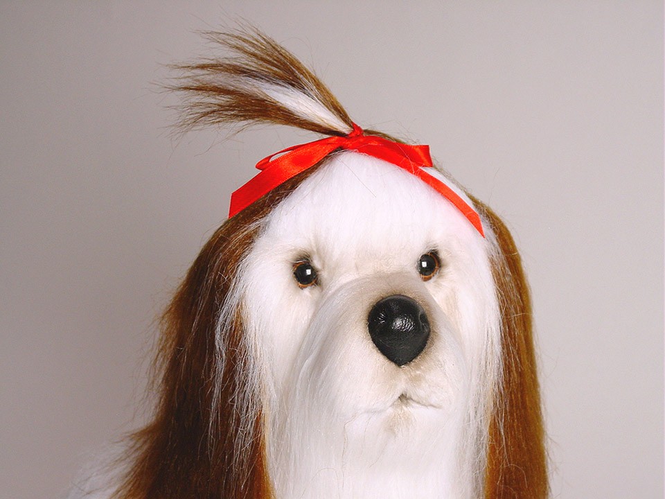 This astonishingly lifelike Shih Tzu, a full-size studio model, is one of three created by the master artisans of Piutrè Italy. The synthetic, soft-to-the-touch plush is true to life, accurately replicating the characteristically long, luxurious coat of the breed. Each piece is hand-trimmed and hand-finished for an exceptional degree of realism. The tag on this Shih Tzu, individually signed by a member of the Angeli family, is your hallmark of the uncompromising artistry and craftsmanship that go into the making of each Piutrè animal.