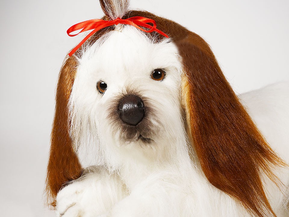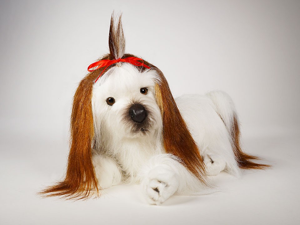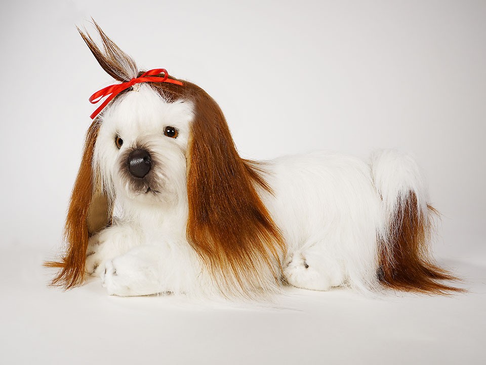 This astonishingly lifelike Shih Tzu, a full-size studio model, is one of three created by the master artisans of Piutrè Italy. The synthetic, soft-to-the-touch plush is true to life, accurately replicating the characteristically long, luxurious coat of the breed. Each piece is hand-trimmed and hand-finished for an exceptional degree of realism. The tag on this Shih Tzu, individually signed by a member of the Angeli family, is your hallmark of the uncompromising artistry and craftsmanship that go into the making of each Piutrè animal.