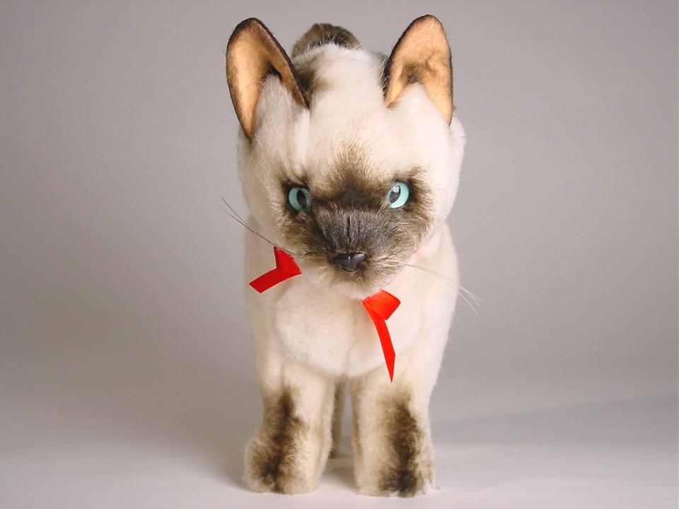 This astonishingly lifelike kitten is one of a family of more than a dozen Siamese Cats created by the master artisans of Piutrè Italy. Every detail is just right — from its short, pale-fawn coat and seal points to its deep-blue almond eyes. Each piece is made from synthetic, soft-to-the-touch plush and is hand-trimmed and hand-finished for an exceptional degree of realism. The tag on this Siamese Kitten, individually signed by a member of the Angeli family, is your hallmark of the uncompromising artistry and craftsmanship that goes into the making of each Piutrè animal.