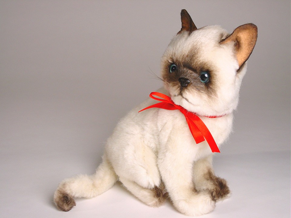 This astonishingly lifelike kitten is one of a family of more than a dozen Siamese Cats created by the master artisans of Piutrè Italy. Every detail is just right — from its short, pale-fawn coat and seal points to its deep-blue almond eyes. Each piece is made from synthetic, soft-to-the-touch plush and is hand-trimmed and hand-finished for an exceptional degree of realism. The tag on this Siamese Kitten, individually signed by a member of the Angeli family, is your hallmark of the uncompromising artistry and craftsmanship that goes into the making of each Piutrè animal.
