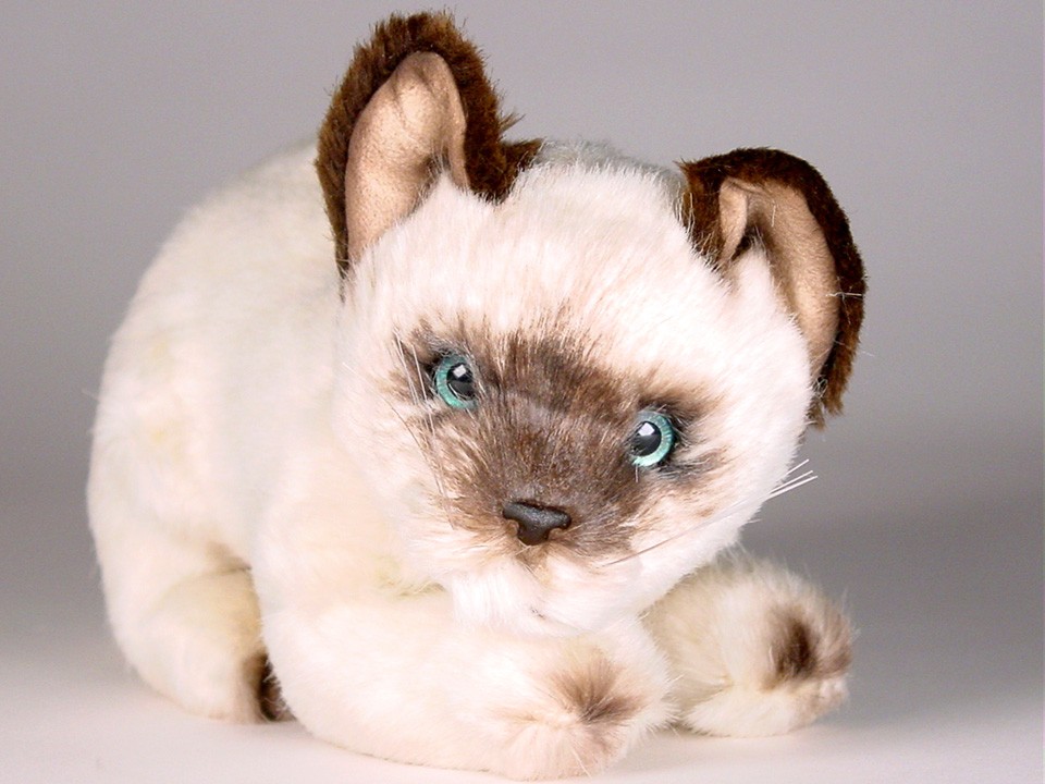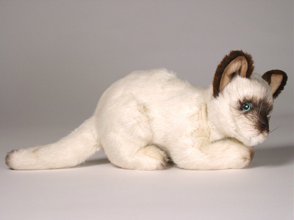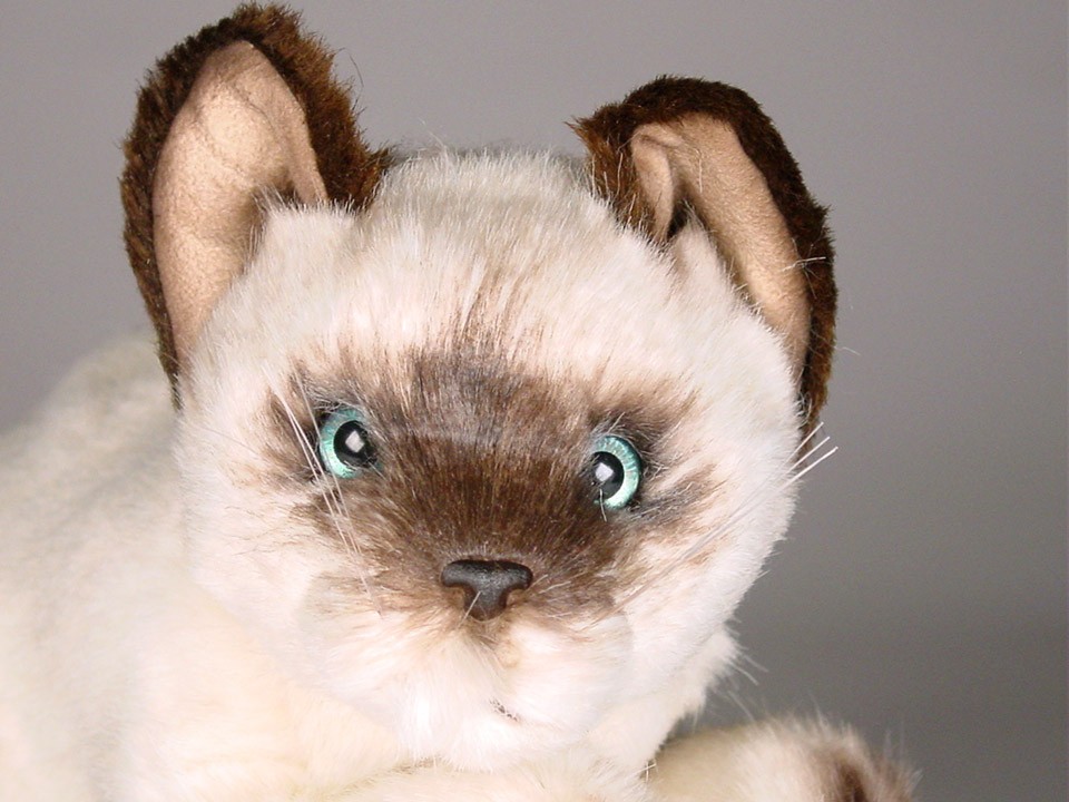 This adorable Siamese Kitten is one of more than a dozen Siamese Cats created by the master artisans of Piutrè Italy. The synthetic, soft-to-the-touch plush is true to life, in the characteristic short, pale-fawn coat of the Seal Point Siamese. Each piece is hand-trimmed and hand-finished for an exceptional degree of realism. The tag on this Siamese Kitten, individually signed by a member of the Angeli family, is your hallmark of the uncompromising artistry and craftsmanship that go into the making of each Piutrè animal.