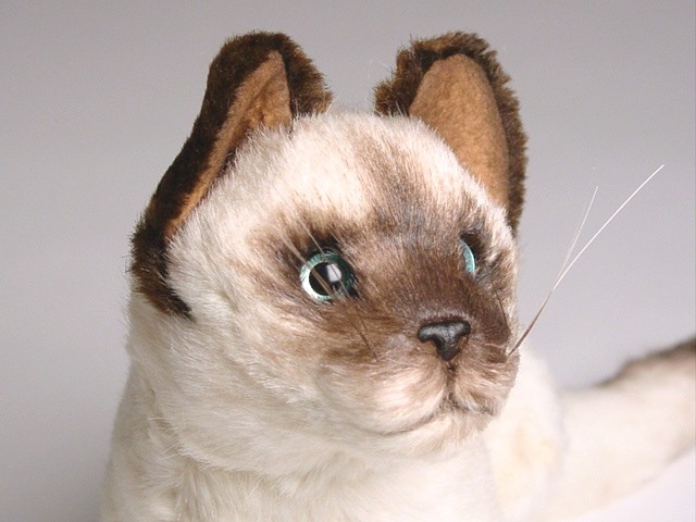 This adorable Siamese Kitten is one of more than a dozen Siamese Cats created by the master artisans of Piutrè Italy. The synthetic, soft-to-the-touch plush is true to life, in the characteristic short, pale-fawn coat of the Seal Point Siamese. Each piece is hand-trimmed and hand-finished for an exceptional degree of realism. The tag on this Siamese Kitten, individually signed by a member of the Angeli family, is your hallmark of the uncompromising artistry and craftsmanship that go into the making of each Piutrè animal.