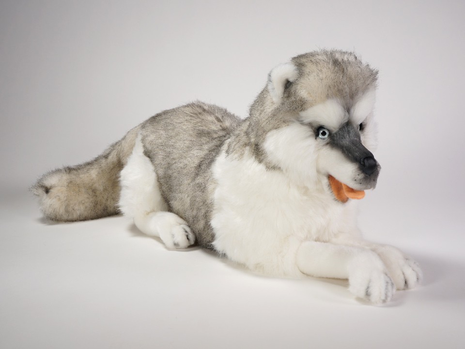 This astonishingly lifelike Siberian Husky, a full-size studio model, is one of a family of eleven created by the master artisans of Piutrè Italy. The synthetic, soft-to-the-touch plush is true to life, accurately replicating the well-furred coat of the breed. Each piece is hand-trimmed and hand-finished for an exceptional degree of realism. The tag on this Siberian Husky, individually signed by a member of the Angeli family, is your hallmark of the uncompromising artistry and craftsmanship that go into the making of each Piutrè animal.