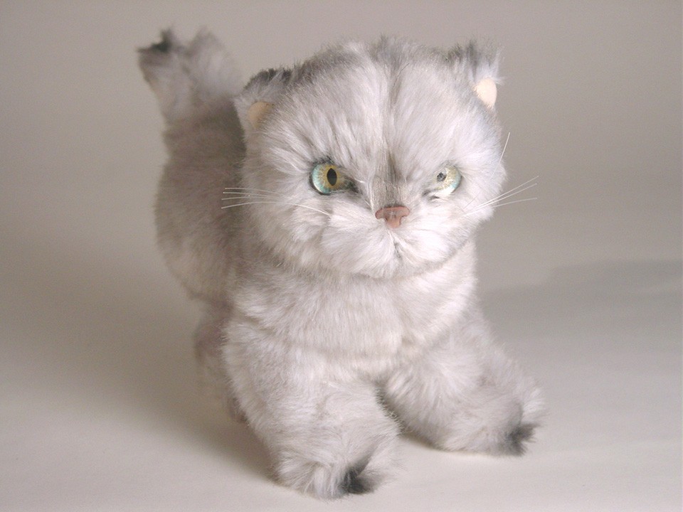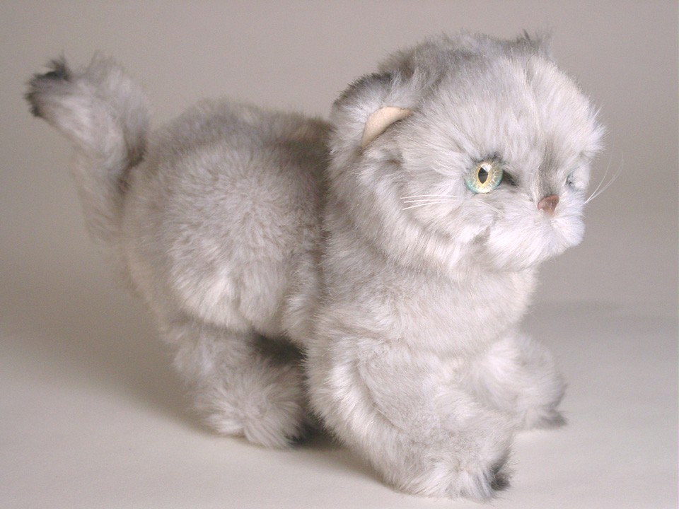 This astonishingly lifelike kitten is one of a family of seven Silver Persian Cats created by the master artisans of Piutrè Italy. Every detail is just right — from its cobby body and long, thick coat to its expressive, brilliant-copper eyes. Each piece is made from synthetic, soft-to-the-touch plush and is hand-trimmed and hand-finished for an exceptional degree of realism. The tag on this Silver Persian Kitten, individually signed by a member of the Angeli family, is your hallmark of the uncompromising artistry and craftsmanship that goes into the making of each Piutrè animal.