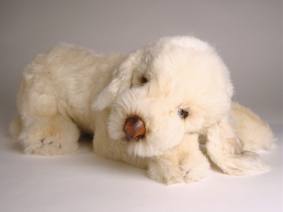 This astonishingly lifelike puppy is one of a family of four Spinones Italiano created by the master artisans of Piutrè Italy. The synthetic, soft-to-the-touch plush is true to life, in the characteristically dense coat of the breed. Each piece is hand-trimmed and hand-finished for an exceptional degree of realism. The tag on this Spinone Italiano Puppy, individually signed by a member of the Angeli family, is your hallmark of the uncompromising artistry and craftsmanship that go into the making of each Piutrè animal.