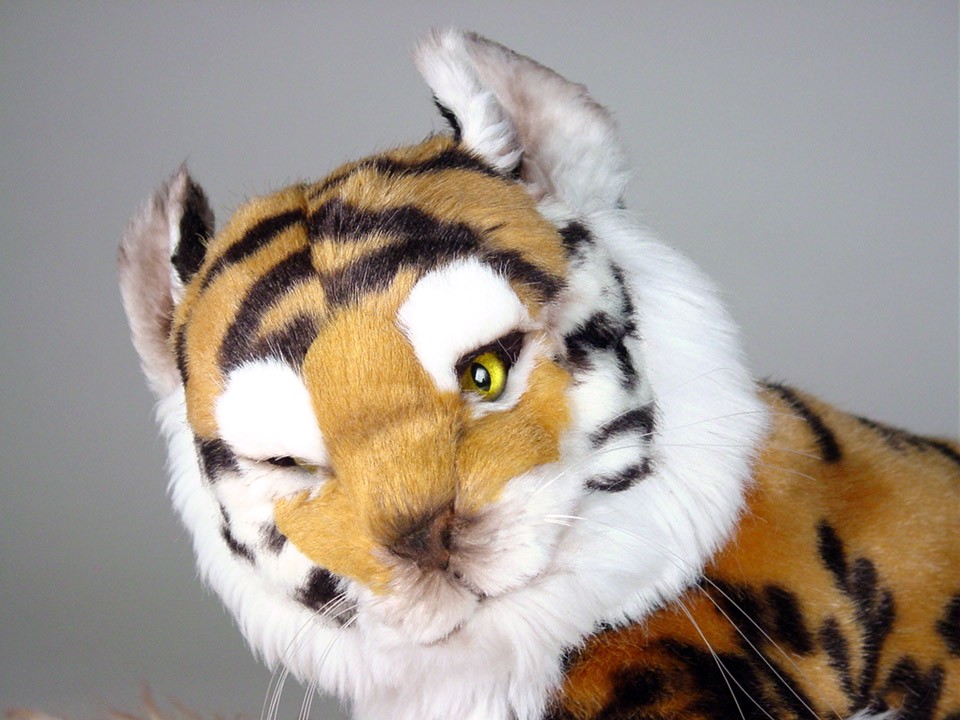 This astonishingly lifelike Bengal Tiger Cub is one of nearly a dozen different Bengal Tigers created by the master artisans of Piutrè Italy. The synthetic, soft-to-the-touch plush is true to life, with each piece hand-trimmed and hand-finished for an exceptional degree of realism. The tag on this Bengal Tiger Cub, individually signed by a member of the Angeli family, is your hallmark of the uncompromising artistry and craftsmanship that go into the making of each Piutrè animal.